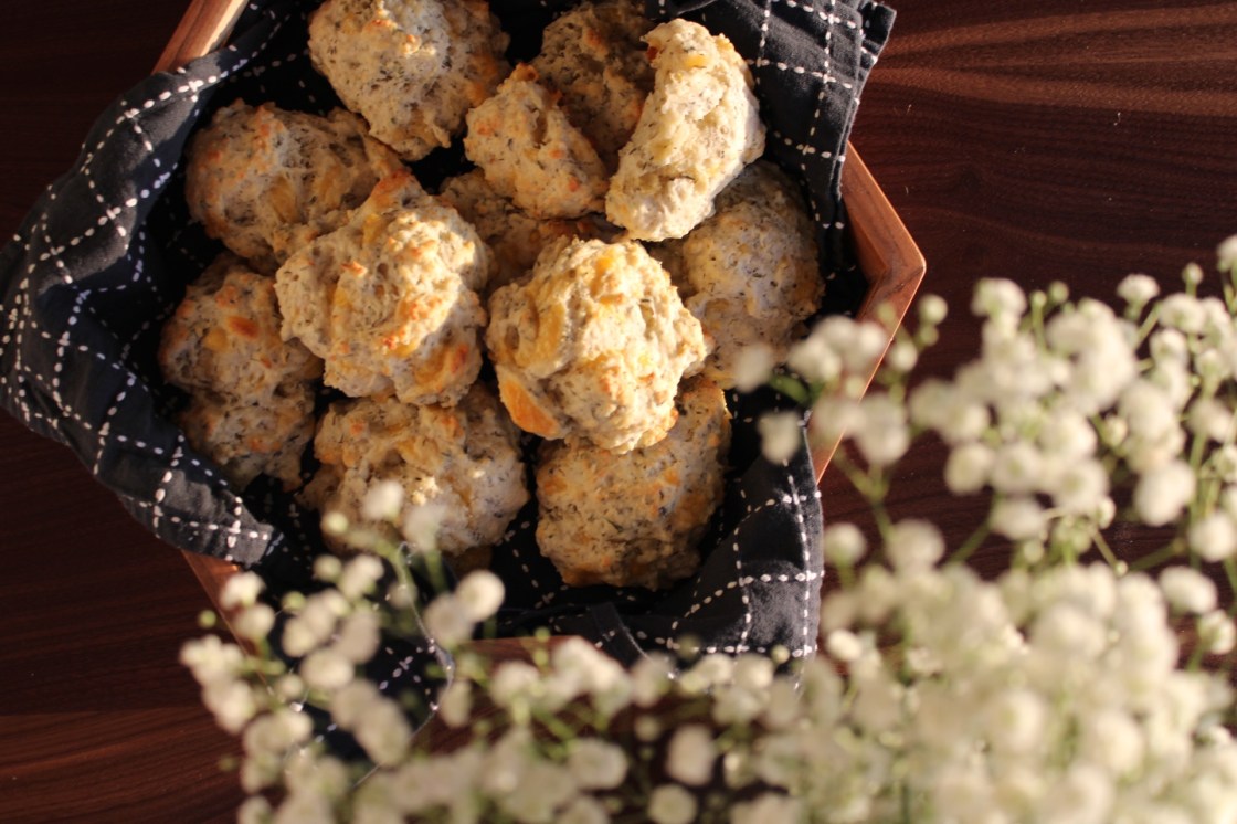 Um, yeah, herby cheesy yumminess? Can’t beat that! These biscuits are quick and easy, and they go good with so many meals. Especially dads shepherds pie or mommas chicken noodle soup!