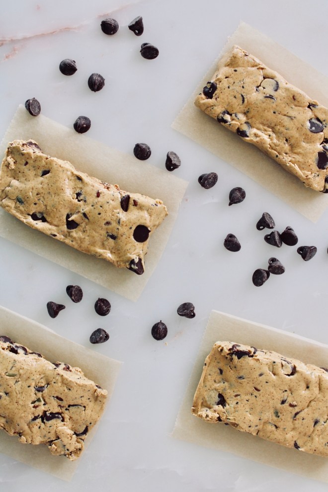 And the secret? The Kirkland’s signature nut butter with almonds, cashews, pumpkin seeds, chia seeds, and flax seeds. I don’t know what’s so good about this nut butter but for some reason when mixed with whey, honey, and chocolate chips, your gonna say “it’s the best protein bar i ever had!” So good…. I can never make some ahead of time because the more I make the more we’ll just eat right then! I hope y’all enjoy these protein bars as much as we do!!!