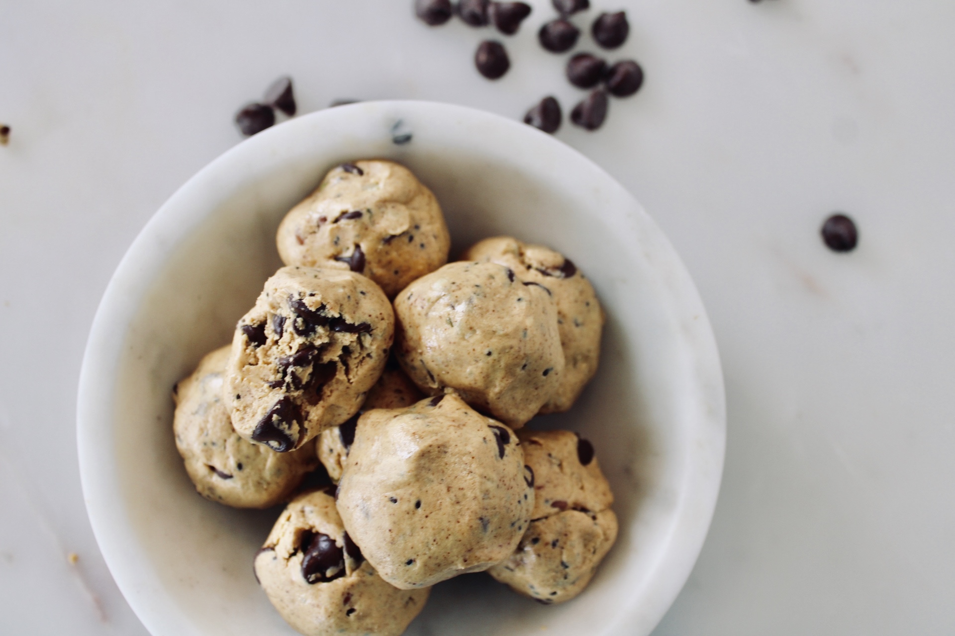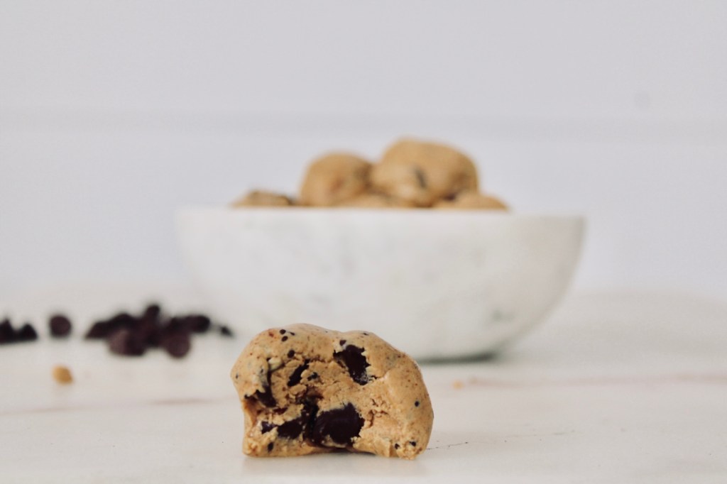 - Start by putting the nut butter in a bowl, then add the whey and honey, then the chocolate chips.