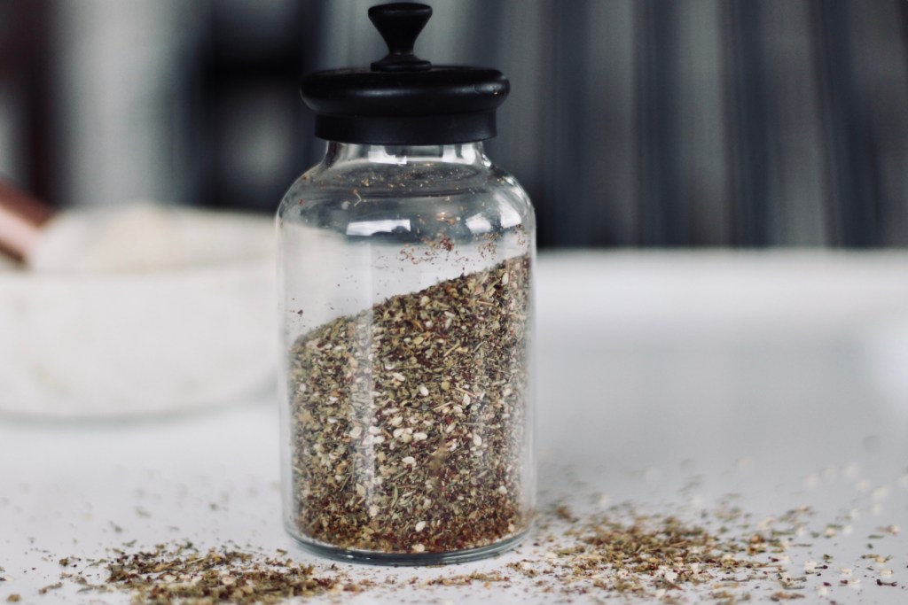 Za’atar is a middle eastern spice mixed with yummy herbs, toasted sesame seeds, and sumac. Delicious on Mana’eesh, a pita style Lebanese bread.