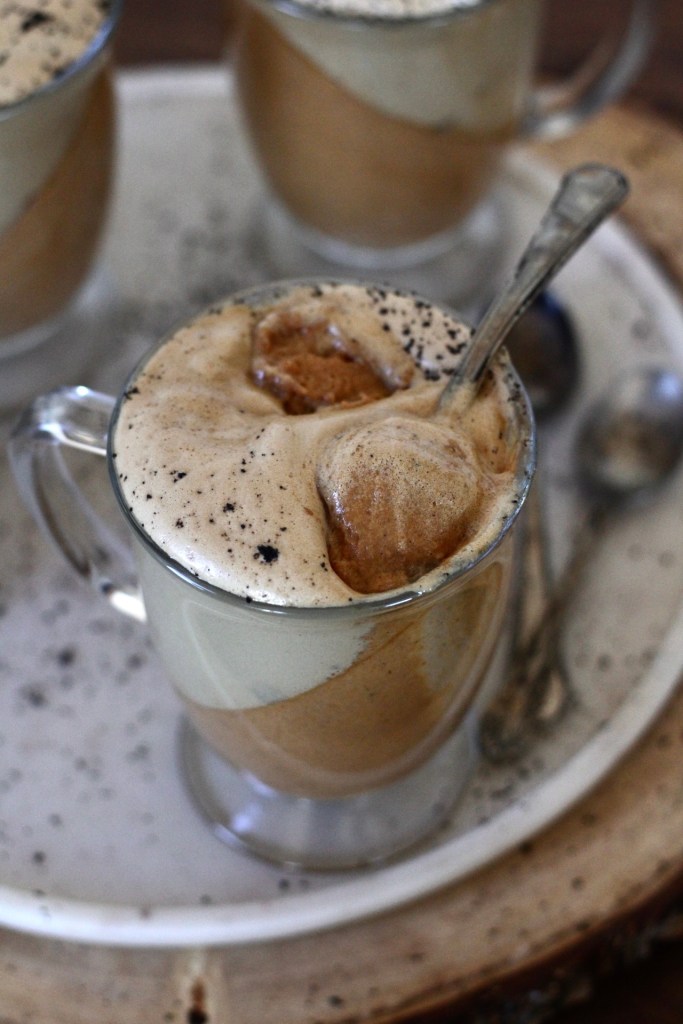 - Place whipped coffee over the top of the panna cotta and enjoy!!!