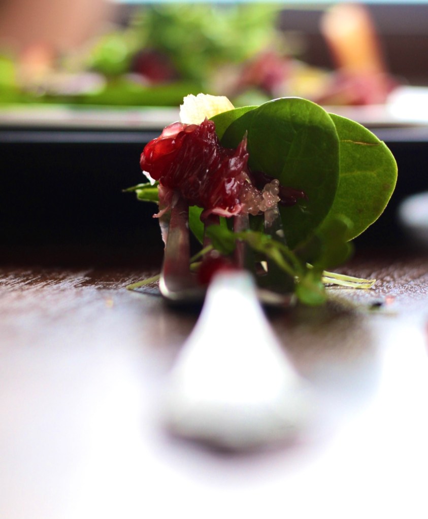 This salad is what you are looking for this winter. Bright, cheerful, fresh, in-season salad perfect for any day. Pomegranates, finger limes, blood oranges, micro greens all come beautifully together… sounds pretty amazing to me!