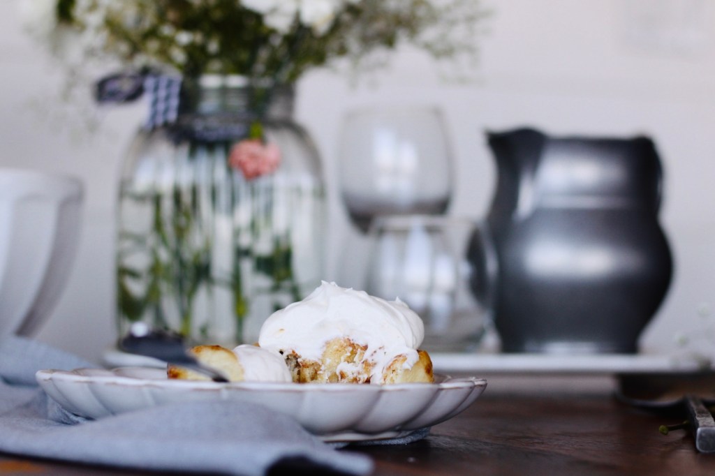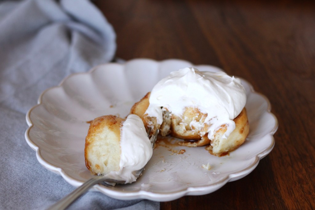Can we just talk about this cream cheese frosting for a sec? Um, AMAZING!! It’s like airy but still dense, melts a little on warm cinnamon rolls, sweet but not to sweet, yet still the amazing taste of cream cheese coming through… oh man!!