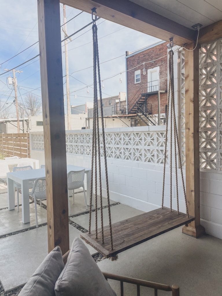 They have a fun patio and an amazing backyard with turf, swings, and a trailer they use as a good truck!!