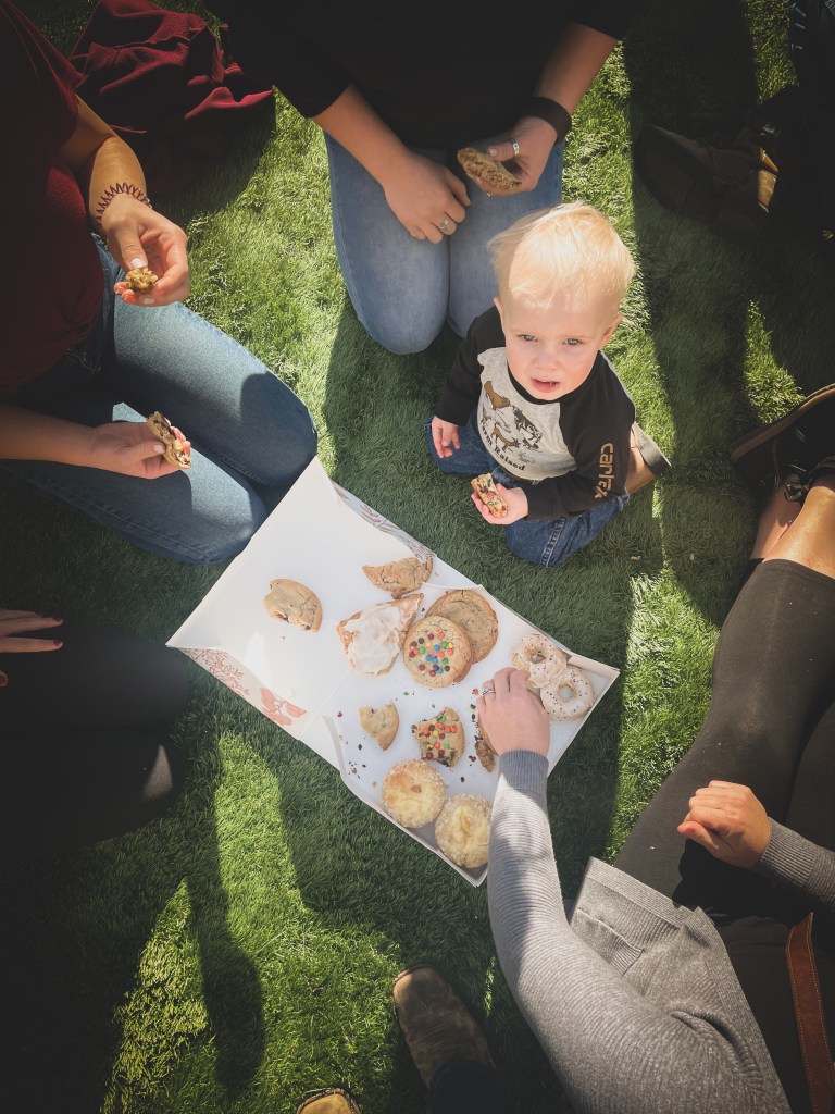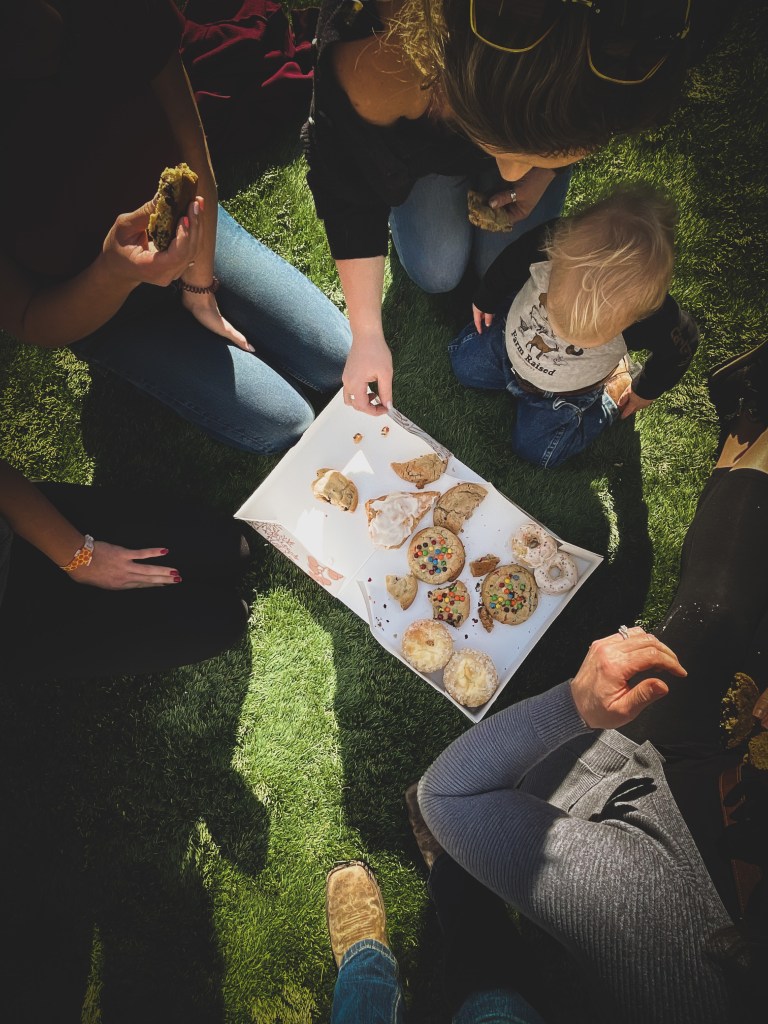 We took a big box of goodies out to the back and enjoyed them on the turf:).