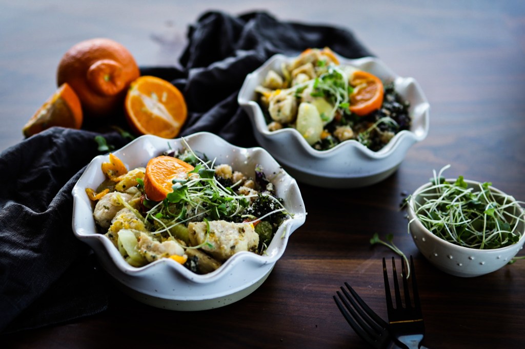 Fonio is the word y’all!! I mean this delicious little grain isn’t only amazingly tasty, but is also very nutritious and could help turn on your genetics by effecting your epigenetics👍🏼. Not only that but you got high vitamins and antioxidants from the tangerine, and the amazing chickpeas packed with manganese, folate (epigenetic effects), copper, iron, zinc, phosphorus, magnesium, thiamine, vitamin B6, selenium, and potassium. If that’s not enough reasons to make this bowl then I don’t know what is 😆. Oh and don’t forgot my friend chicken, rich in niacin, selenium, phosphorus, vitamin B6, vitamin B12, riboflavin, zinc, thiamine, potassium, and copper. All that topped with epigenetic boosting broccoli sprouts. Yay!!